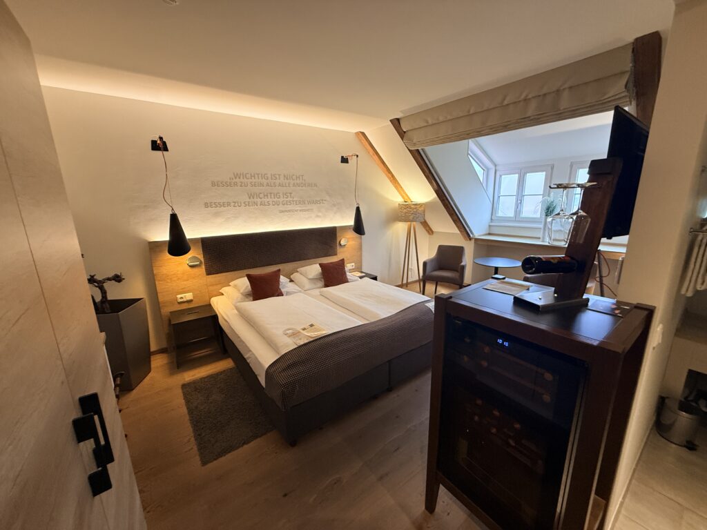 Die 700 Jahre zurückreichende Geschichte ist in jedem Winkel spürbar. Unser Zimmer war komfortabel und spiegelte die behagliche Atmosphäre im modernen Landhausstil wider. Romantische Ecken gibt es im Althof jede Menge.
